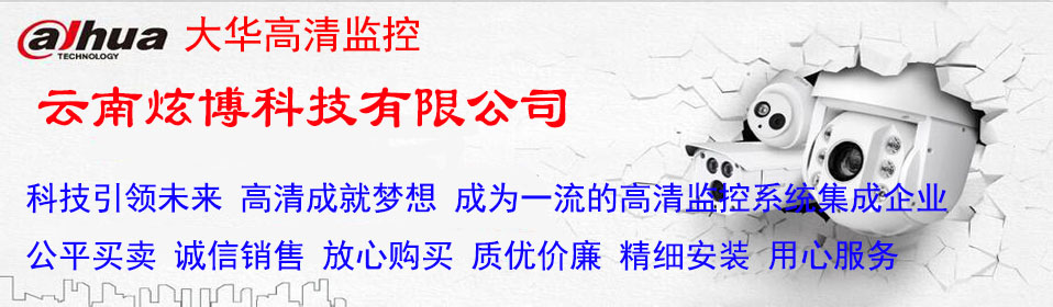热忱欢迎全国各地及云南 曲靖 昆明 玉溪 大理 楚雄 红河 丽江 保山 昭通 普洱 临沧 大理 西双版纳 德宏 迪庆 怒江的广大客户前来云南炫博科技有限公司购买云南高清监控、曲靖高清监控、大华高清监控、海康威视高清监控。我公司的产品都是从原生产厂家直接进货,并得到生产厂家直接的技术支持,我们本着“公平买卖 诚信销售 价格合理 放心购买 精细安装 用心服务”的经营理念,加上我们多年在音视频数字媒体、网络工程、电子电器领域丰富的专业经验及创新意识,从而使我们公司能以优良的产品,良好的性价比和富有创意的解决方案、细致周到的服务成为云南曲靖领先的、具有综合实力的IT、多媒体产品、网络设备、专业音视频及安防智能化产品的系统集成服务商!我公司衷心期待与贵单位的合作,如果有机会向贵单位销售我们的产品,我们将一如既往的为你们提供完好、优质的售后服务,让你们轻松的使用、愉快的使用,无后顾之忧!网站管理